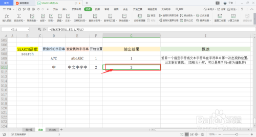 可以看到表中有三列数据,别离是要查找的字符串、被查找的字符串、起头位置,用于之后的函数操作,还有一句关于此函数的简单概述。