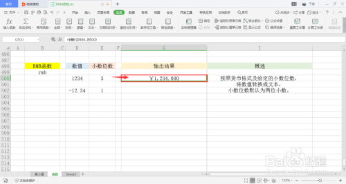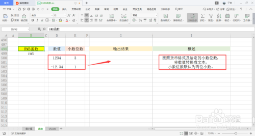 可以看到表中有两列,别离是数值和小数位数,用于之后的函数操作,还有一句关于此函数的简单概述。