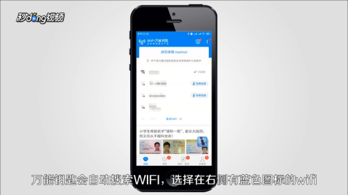 - 3全能钥匙会主动搜刮WIFI,选择在右侧有蓝色图标的wifi。