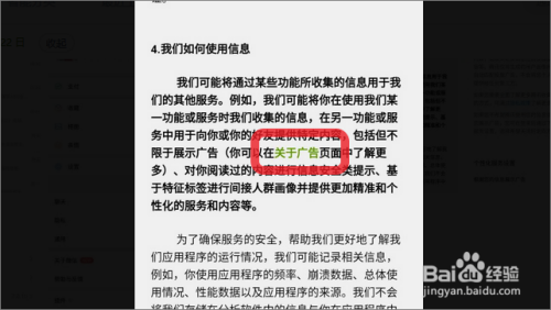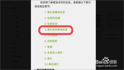 进入隐私庇护指引界面后,将页面下拉到中部,直到呈现如图所示界面,点击【我们如何利用信息】文字
