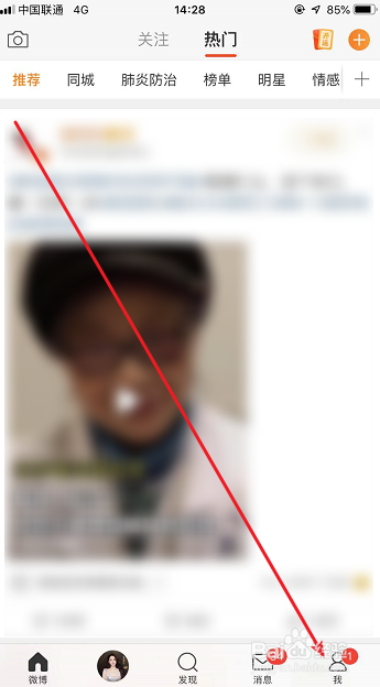 打开微博后,点击右下角【我】