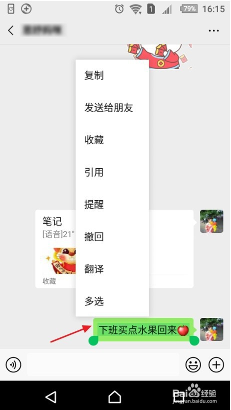 3:长按信息一秒钟,会弹出一个对话框。
