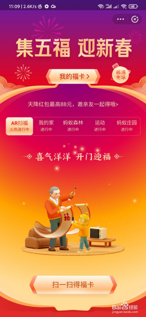 打开支付宝进入集五福活动,点击进入我的福卡。