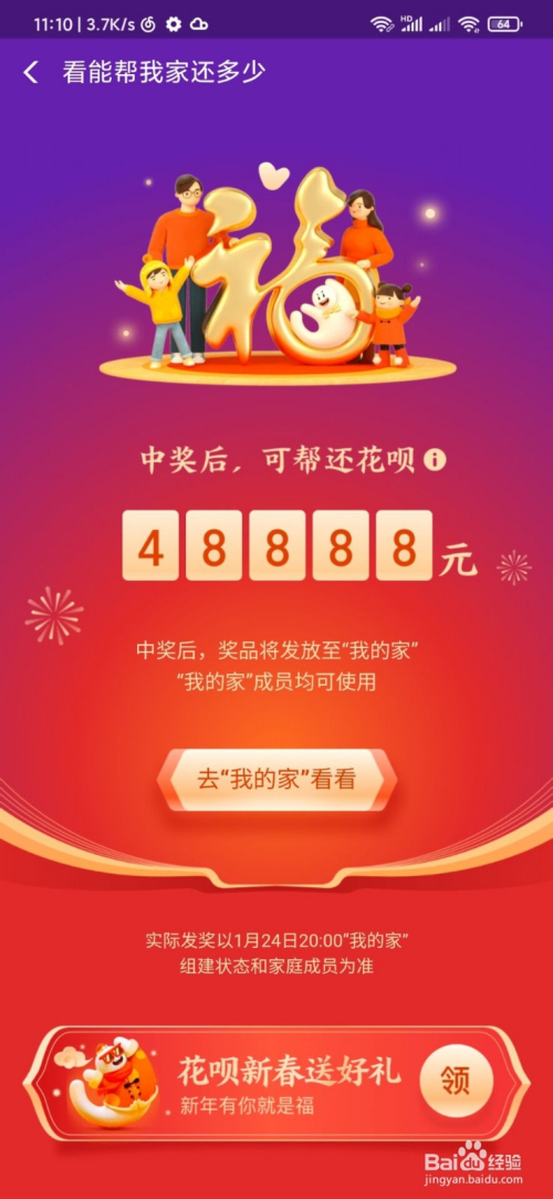 进入查看能还几多花呗,发奖时候为1月24日20:00。