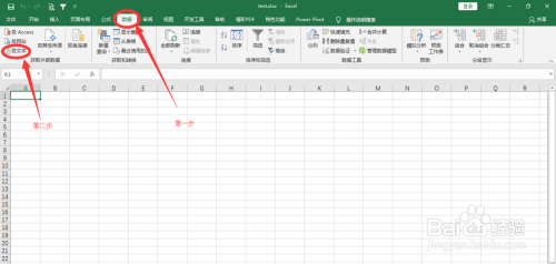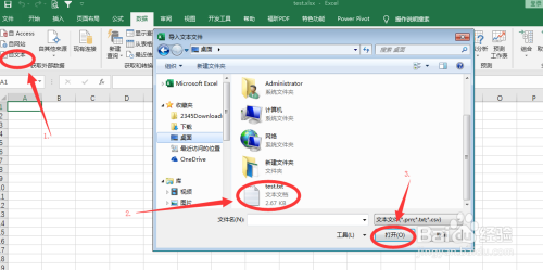 打开Excel文档,在“数据”选项卡下,找到“自文本”选项