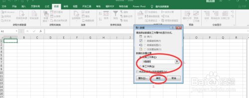 呈现“导入数据”窗口,在这个窗口选择数据肇端位置后,点击“确定”