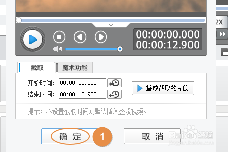 导入之后会有视频预览窗口,然后点击窗口下方的“确定”,这样即可对该视频进行编纂了,同时软件的已添加片段素材中也能看到它;