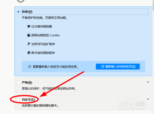 7、单击【自界说】按需进行个性化跟踪庇护设置