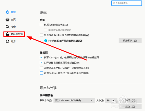 进入【选项】网页界面,单击【隐私与平安】选项卡