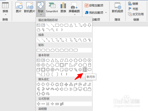 3、在插入界面单击外形。