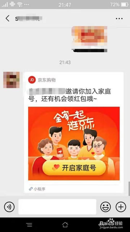 进入老友页面,点击收到的邀请内容,运行京东购物小程序。