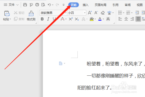 选择WPS WORD使命栏中的“起头”菜单栏。