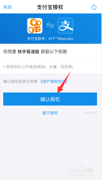调起支付宝后,点击“确认授权”即可绑定支付宝
