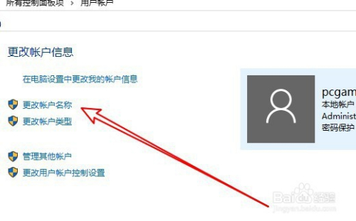 接下来在打开的用户账户窗口,点击更改账户名称的快捷链接。