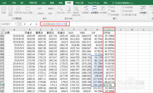 接着再用AVERAGE函数计较DIF指数的10日移动平均值,就获得了DIFMA指数,这样DMA指标的两个指数都计较出来了。