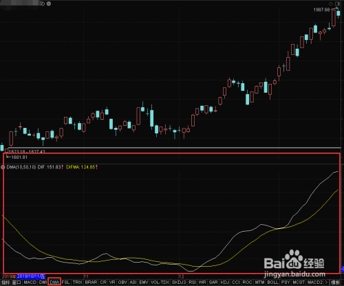 最后可以将绘制出的DMA指标与股票软件的的图形比力是否一致,验证其精确性。