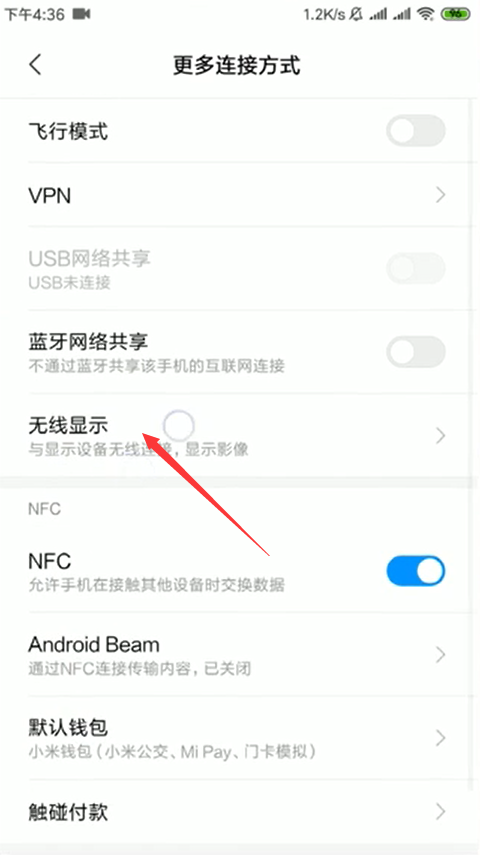 - 3点击“无线显示”,使右边的开关酿成蓝色便是打开。