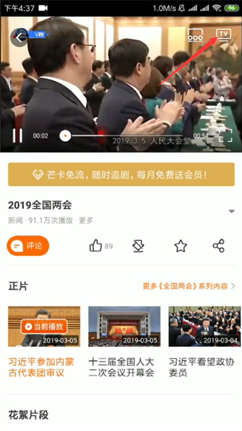 - 6可以在视频右上角看到“TV”字样,点击“TV”,手机视频即可投屏到电视上啦,这种特别的投屏体例是需要手机和电视处于统一WIFI旌旗灯号毗连。