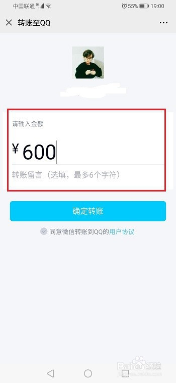 第五步输入转账的金额,进行转账,就可以转账到qq上了,如下图所示: