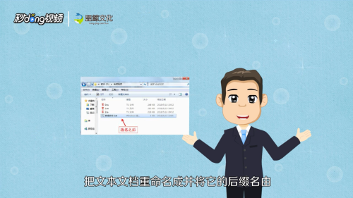 - 7把文本文档重定名当作并将它的后缀名由“.txt”改当作“.bat”。