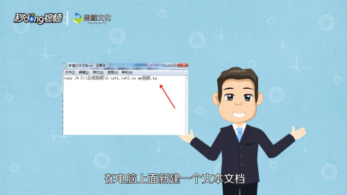 - 6在电脑上面新建一个文本文档,在文本文档里输入,copy/b D:\合当作视频\0.ts+1.ts+2.ts my视频.ts,并保留。