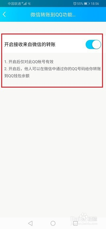 第四步进去之后,默认是开启接收来自微信的转账,如下图所示: