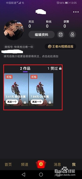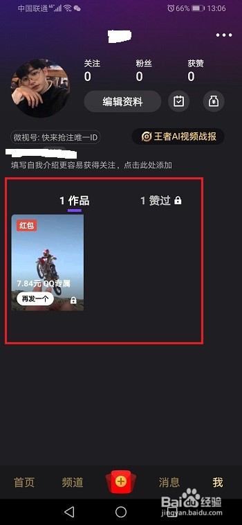 第二步进去微视我的界面,选摘要删除的作品,如下图所示: