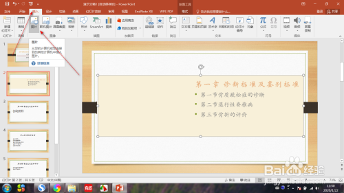 第三步从当地电脑中找到想要进行插入的图片放入幻灯片傍边,然后选中图中的所用,同时按键盘上的CTRL+C,如图所示: