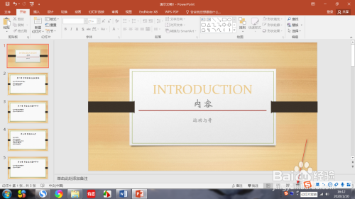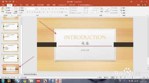 第五步可以看到新建了一个新的幻灯片,且格局与幻灯片首页的格局不异,可以对幻灯片中的文字进行点窜,如图所示: