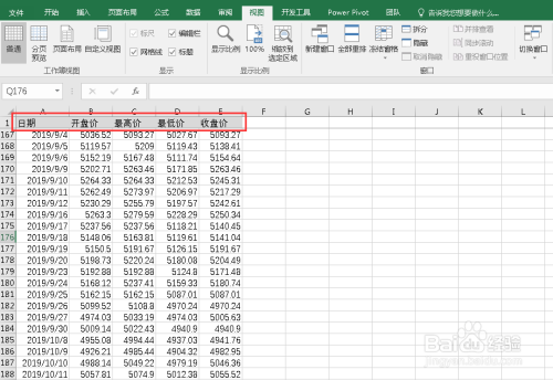 筹办些用于计较的股票数据,图例中为某指数的日期,开盘价、最高价、最低价、收盘价数据。