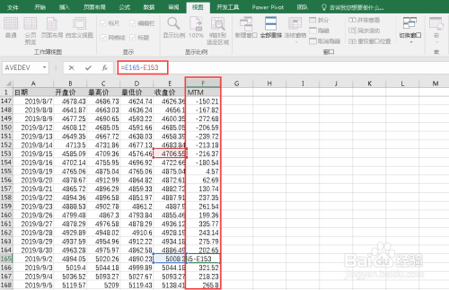 在后面增添一列计较MTM指数,即用当前收盘价减去12天前的收盘价。