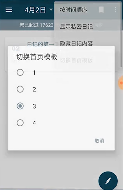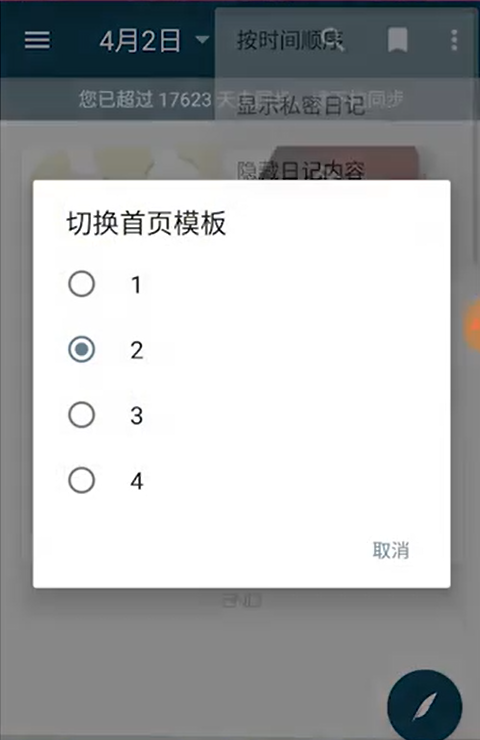 - 1更改本家儿题,打开“一今日记”这条目应用。