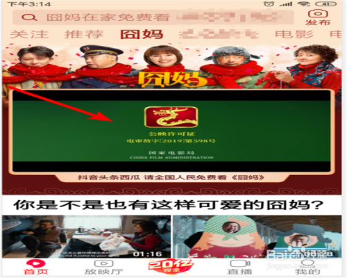 5 在手机上打开西瓜视频app,找到片子囧妈并播放囧妈视频。