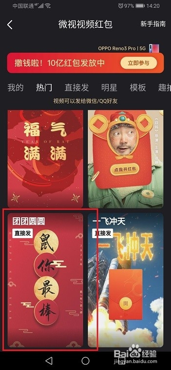 第三步进去微视视频红包界面之后,选摘要发的视频红包,如下图所示: