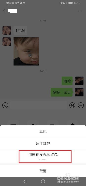 第二步点击红包之后,选择用微视发视频红包,如下图所示: