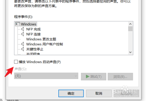 5.勾选播放Windows启动声音的选项。