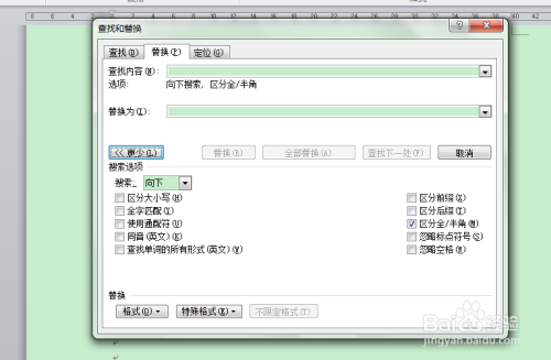 利用快捷键“ctrl+H”打开替代功能,点击左侧的“更多”打开下拉选项。