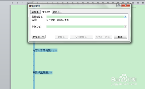 同理,选择“空白区域W”进行全数替代,此外还可将多余的句号进行转换为逗号等。