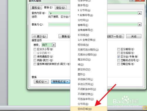 点击下面的“特别格局”,选择“段落标识表记标帜P”。