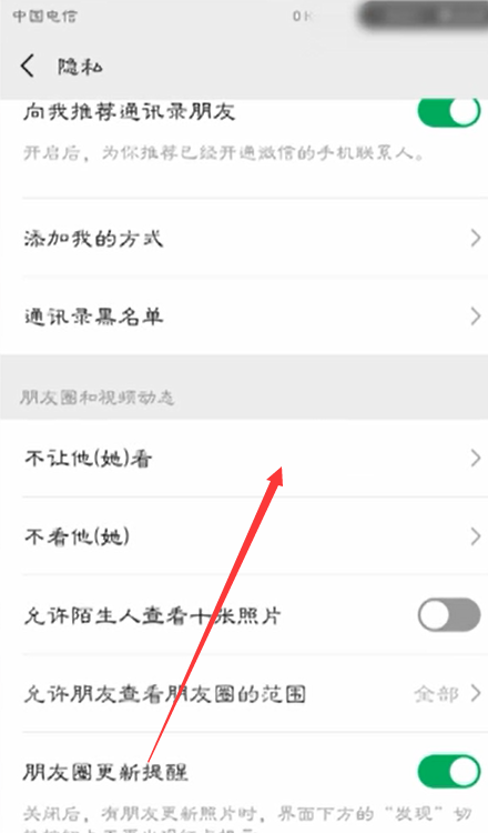 - 6找到“不让他(她)看“这一栏,点击进去。