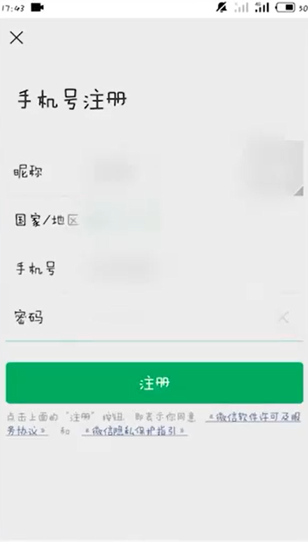 - 6输入昵称、手机号、密码。