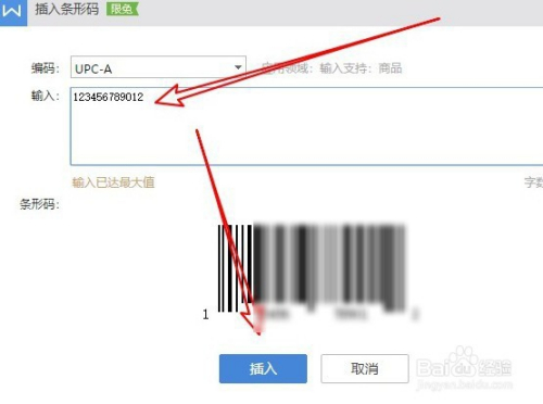 6、然后鄙人面输入条形码的数字,然后点击插入按钮。
