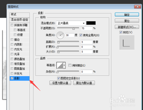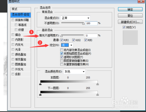 4.单击鼠标右键,选择夹杂选项,降低不透明度,挖空改为浅,并添加投影。