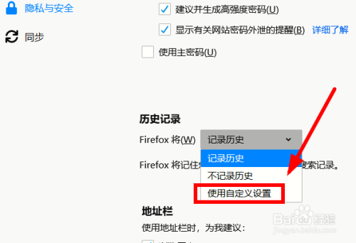 在右边窗口,选择单击【记实汗青】后面的下拉按钮
