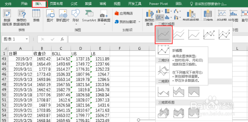 可以将收盘价设置为虚线加以区分,折线图做好后还可以和股票软件中不异指数不异时代的布林线图比力是否一致。