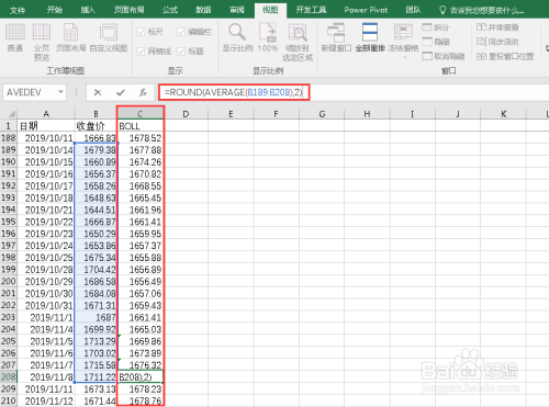 首先在后面增添一列用于计较BOLL指数,利用AVERAGE函数计较比来20日的平均值。还可以用ROUND函数将计较成果四舍五入