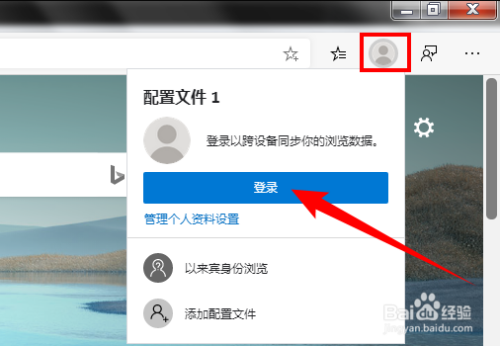 点击浏览器右上角的头像图标,可以登录本身的微软账户,从而进行跨设备同步数据,如下图所示: