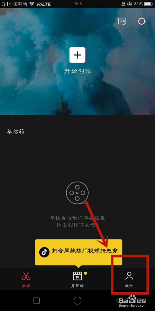 1.打开剪映,点击右下角的我的。