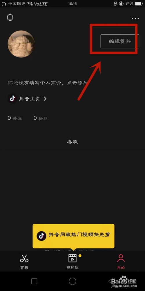 在我的页面,点击进入编纂资料选项。