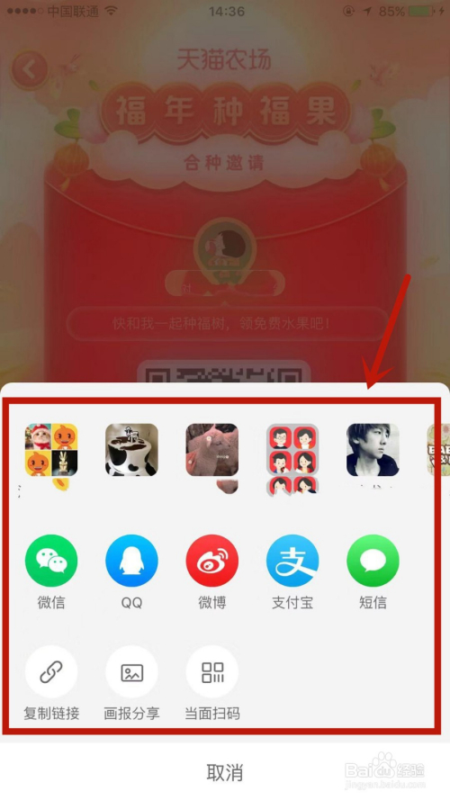 3.点击去邀请,可让老友直接进入淘宝扫码进入步队。
